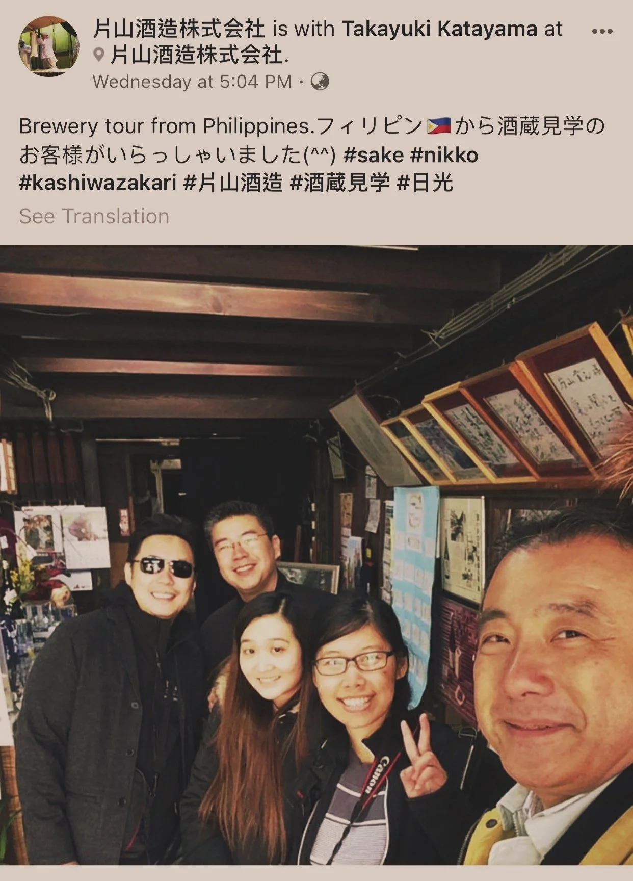 At a fateful Japan trip with sake brewery tour that inspired me to learn more about sake.... (Katayama Shūzo, February 2018)