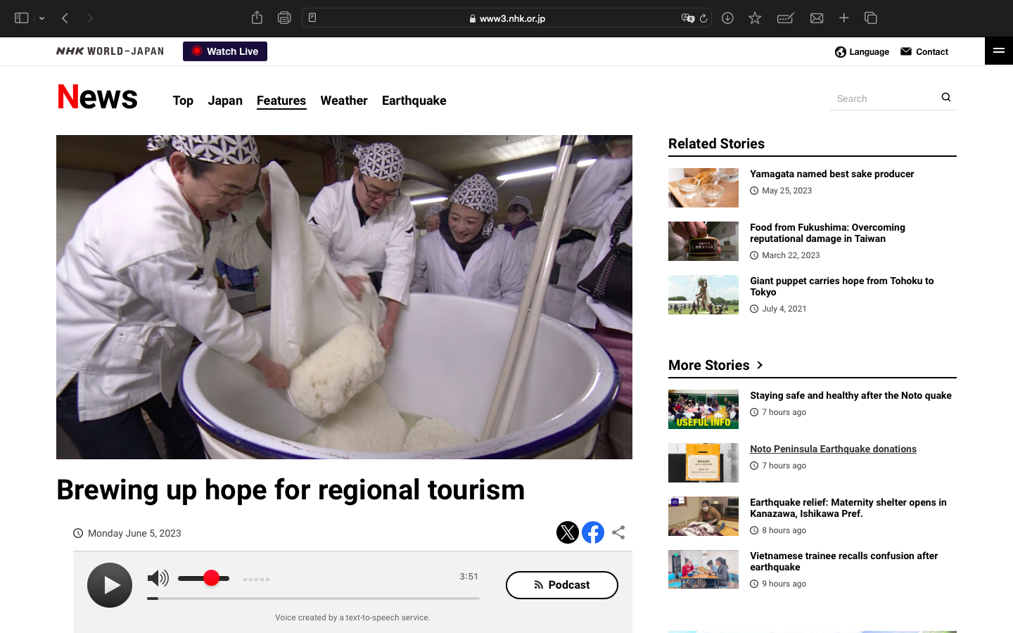 NHK World coverage during lunch break from Kurabito Stay experience.