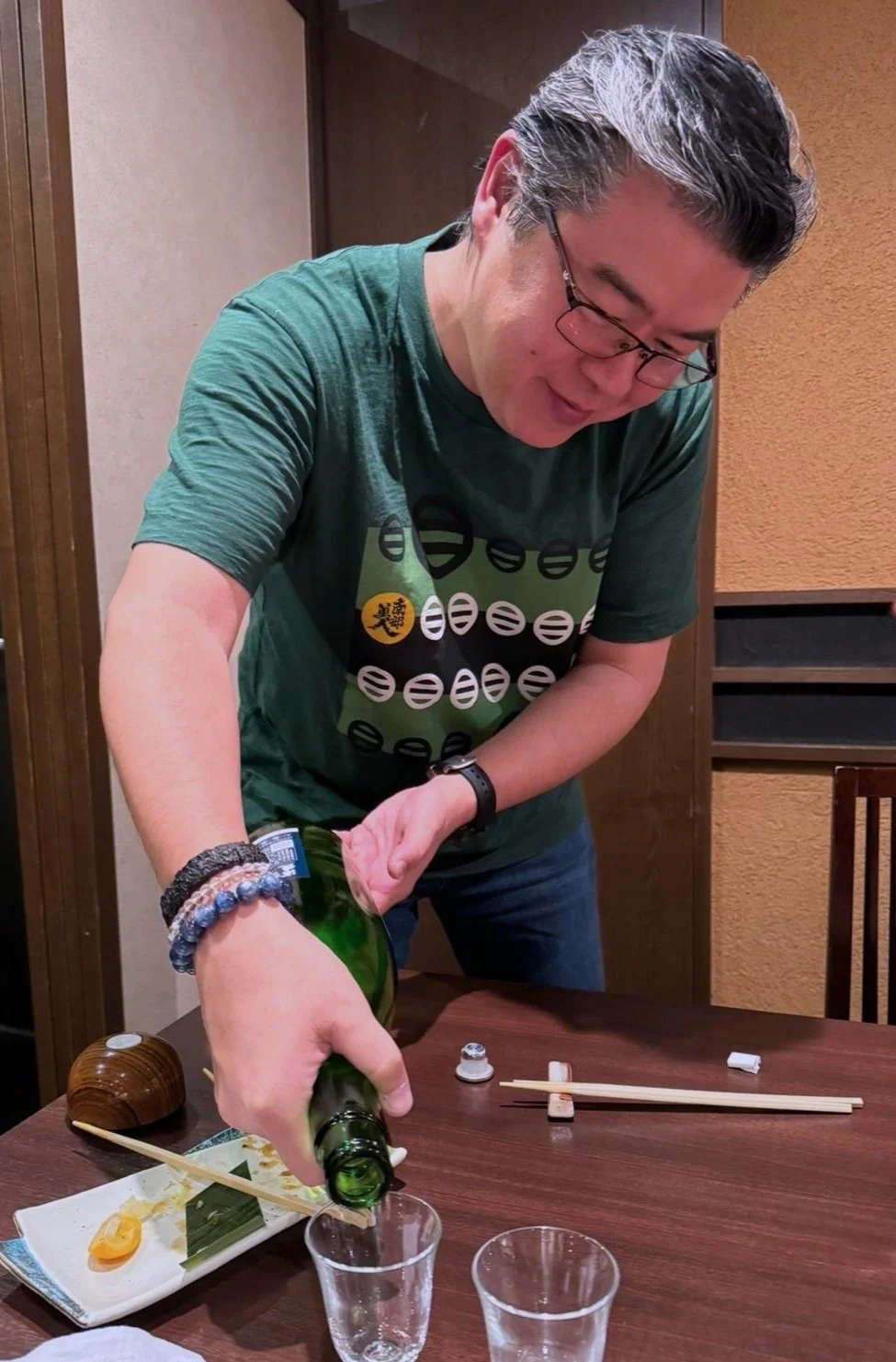 With John Gauntner a.k.a. "The Sake Evangelist" (San Francisco, September 2023); "John Gauntner becomes the first and only non-Japanese to become certified as both a Sake Expert Assessor, as bestowed by the National Research Institute of Brewing, and as a Master of Sake Tasting as bestowed by Nihon Jouzou Kyoukai, the Brewing Society of Japan." (from the Sake World website)